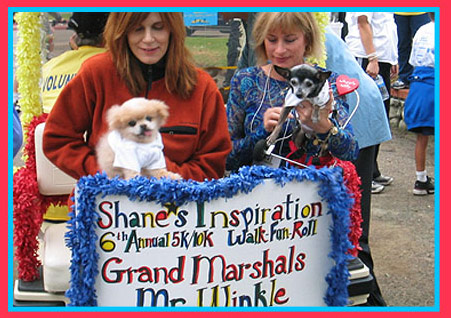 Now for a chance to do my favorite thing - Willy and I are co-grand marshalling a parade to raise money for "Shane's Inspiration," an amazing foundation that helps build special playgrounds for disabled kids. We get a free ride all around the park!